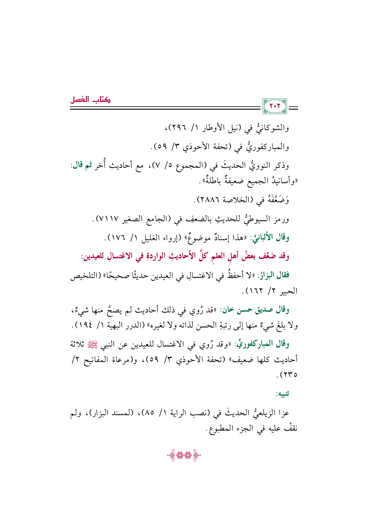 وقد ضَعَّف بعضُ أهلِ العلمِ كلَّ الأحاديثِ الواردةِ في الاغتسالِ للعيدين: