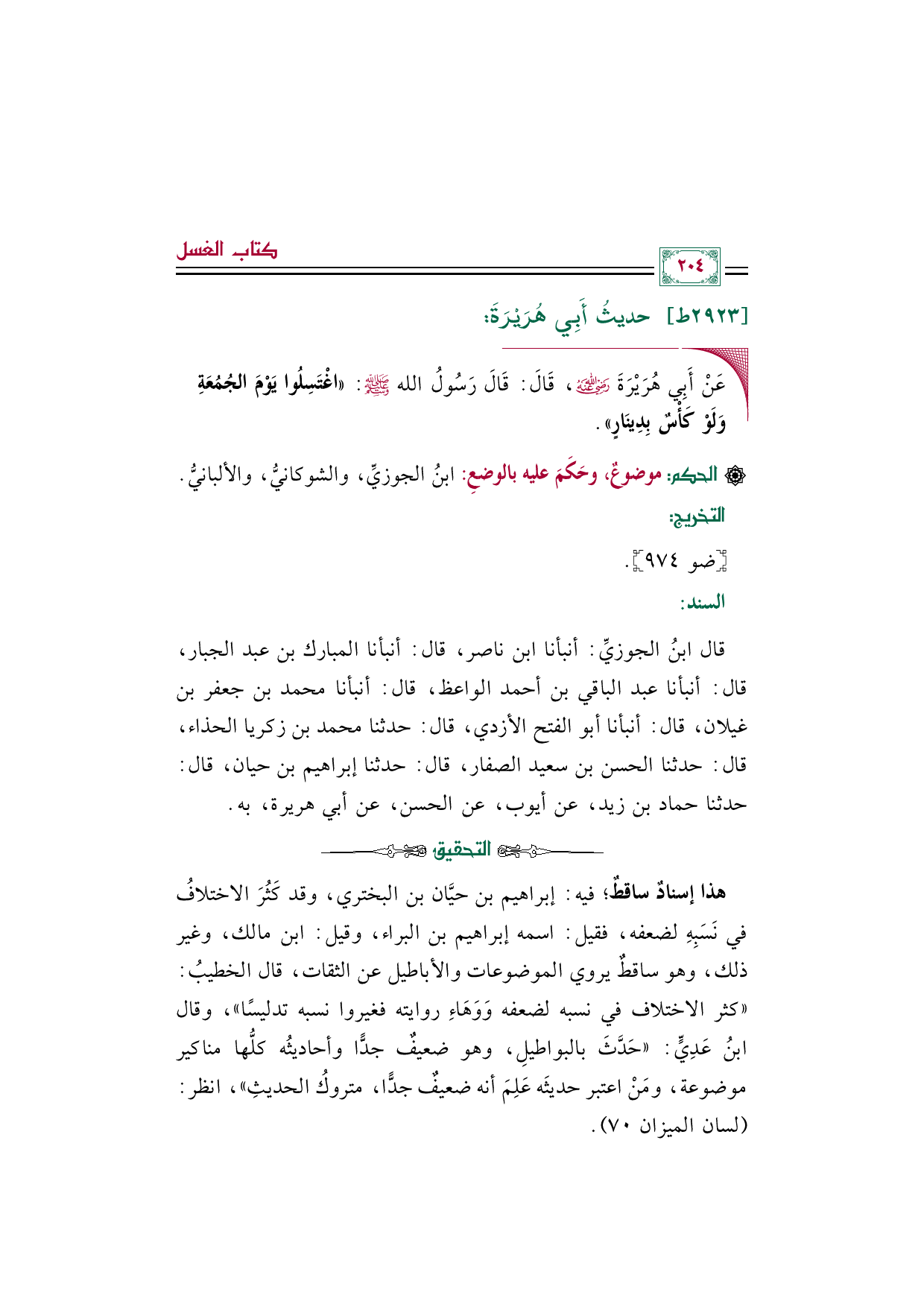 ◼ عَنْ أَبِي هُرَيْرَةَ رضي الله عنه، قَالَ: قَالَ رَسُولُ الله صلى الله عليه وسلم: ((اغْتَسِلُوا يَوْمَ الجُمُعَةِ وَلَوْ كَأْسٌ بِدِينَارٍ)).