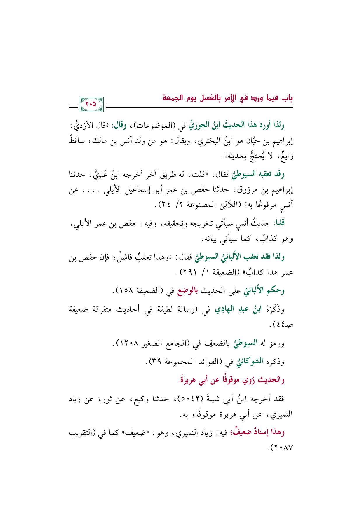 وذَكَرَهُ ابنُ عبدِ الهادِي في (رسالة لطيفة في أحاديث متفرقة ضعيفة صـ ٤٤).
