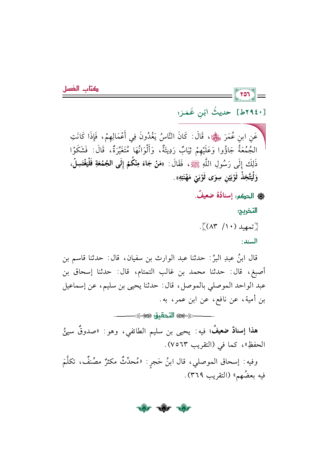 قال ابنُ عبدِ البرِّ: حدثنا عبد الوارث بن سفيان، قال: حدثنا قاسم بن أصبغ، قال: حدثنا محمد بن غالب التمتام، قال: حدثنا إسحاق بن عبد الواحد الموصلي بالموصل، قال: حدثنا يحيى بن سليم، عن إسماعيل بن أمية، عن نافع، عن ابن عمر، به.