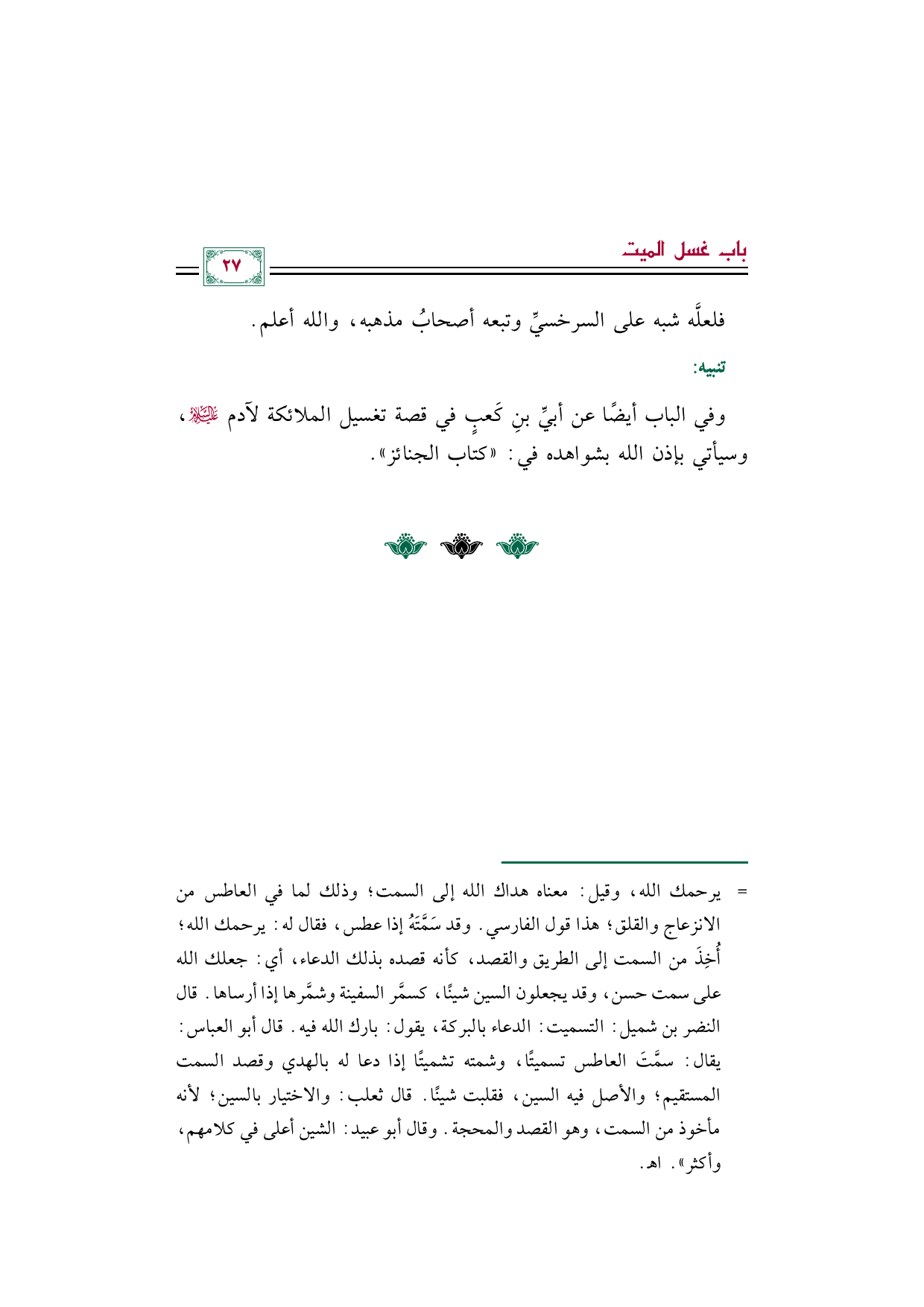 وفي الباب أيضًا عن أبيِّ بنِ كَعبٍ في قصة تغسيل الملائكة لآدم عليه السلام، وسيأتي بإذن الله بشواهده في: (كتاب الجنائز).
