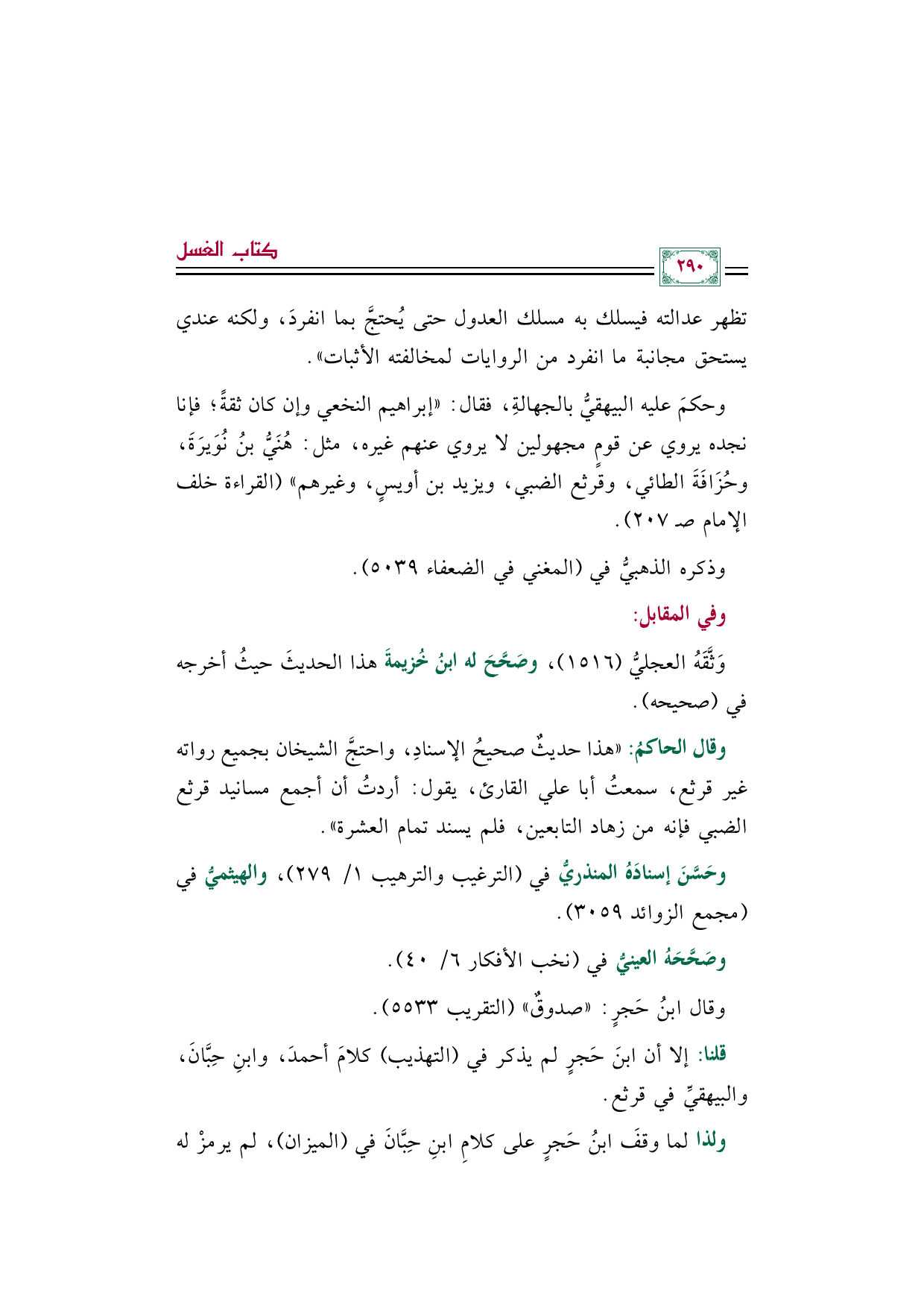 ولذا لما وقفَ ابنُ حَجرٍ على كلامِ ابنِ حِبَّانَ في (الميزان)، لم يرمزْ له