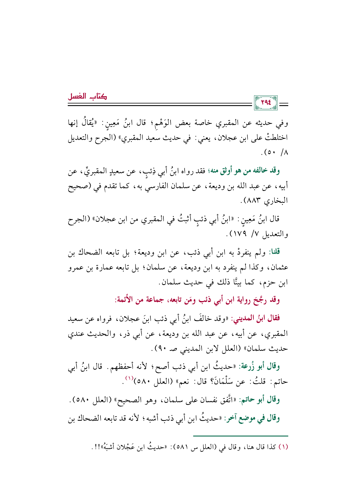 (¬١) كذا قال هنا، وقال في (العلل س ٥٨١): "حديثُ ابن عَجْلان أشبَهُ"! ! .