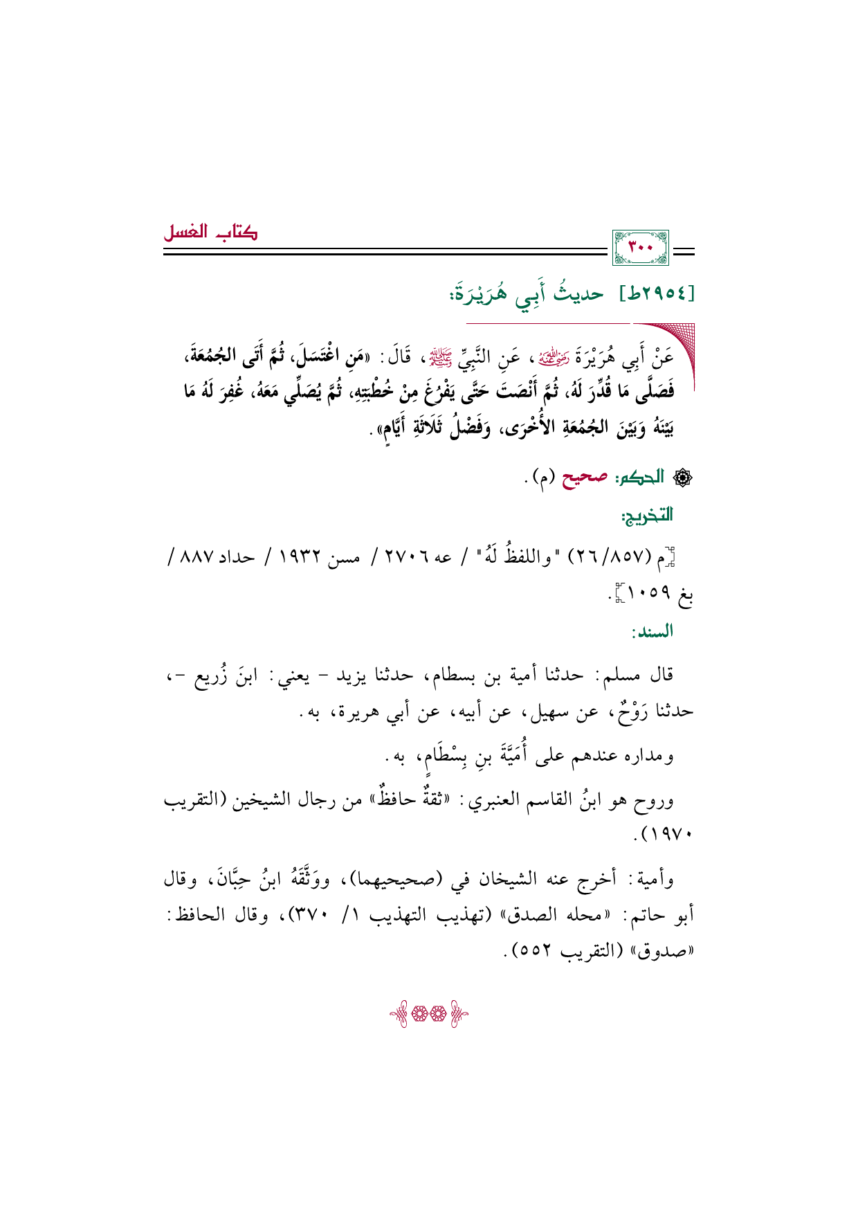 قال مسلم: حدثنا أمية بن بسطام، حدثنا يزيد -يعني: ابنَ زُريع-، حدثنا رَوْحٌ، عن سهيل، عن أبيه، عن أبي هريرة، به.