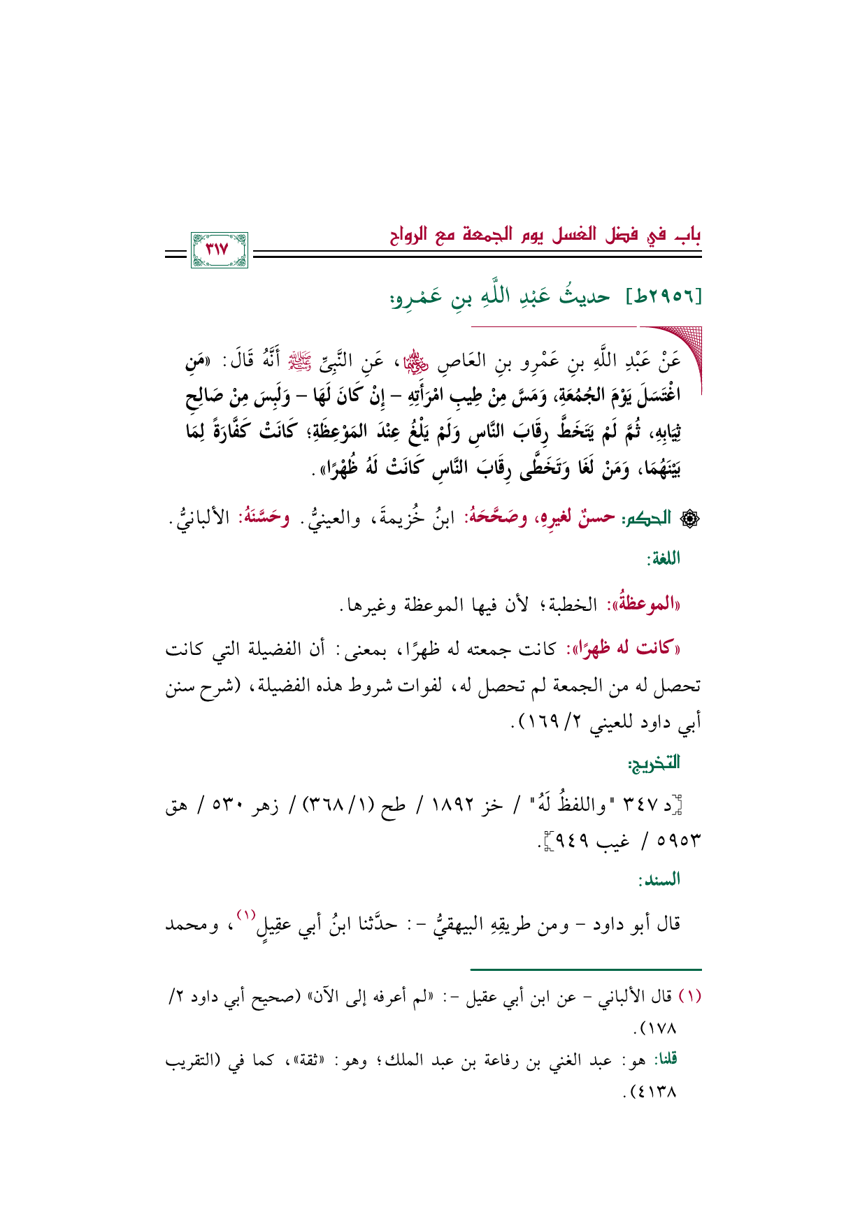 "كانت له ظهرًا": كانت جمعته له ظهرًا، بمعنى: أن الفضيلة التي كانت تحصل له من الجمعة لم تحصل له، لفوات شروط هذه الفضيلة، (شرح سنن أبي داود للعيني ٢/ ١٦٩).