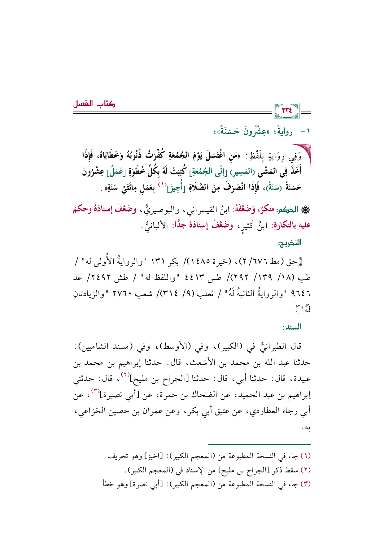 (¬٢) سقط ذكر [الجراح بن مليح] من الإسناد في (المعجم الكبير).