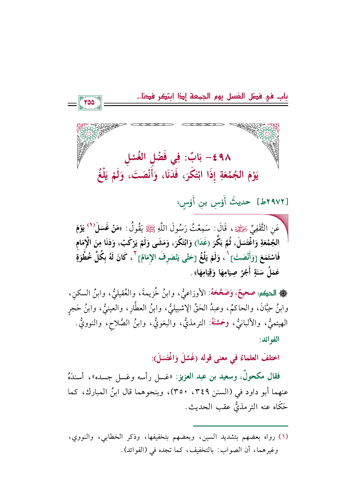 (¬١) رواه بعضهم بتشديد السين، وبعضهم بتخفيفها، وذكر الخطابي، والنووي، وغيرهما، أن الصواب: بالتخفيف، كما تجده في (الفوائد).