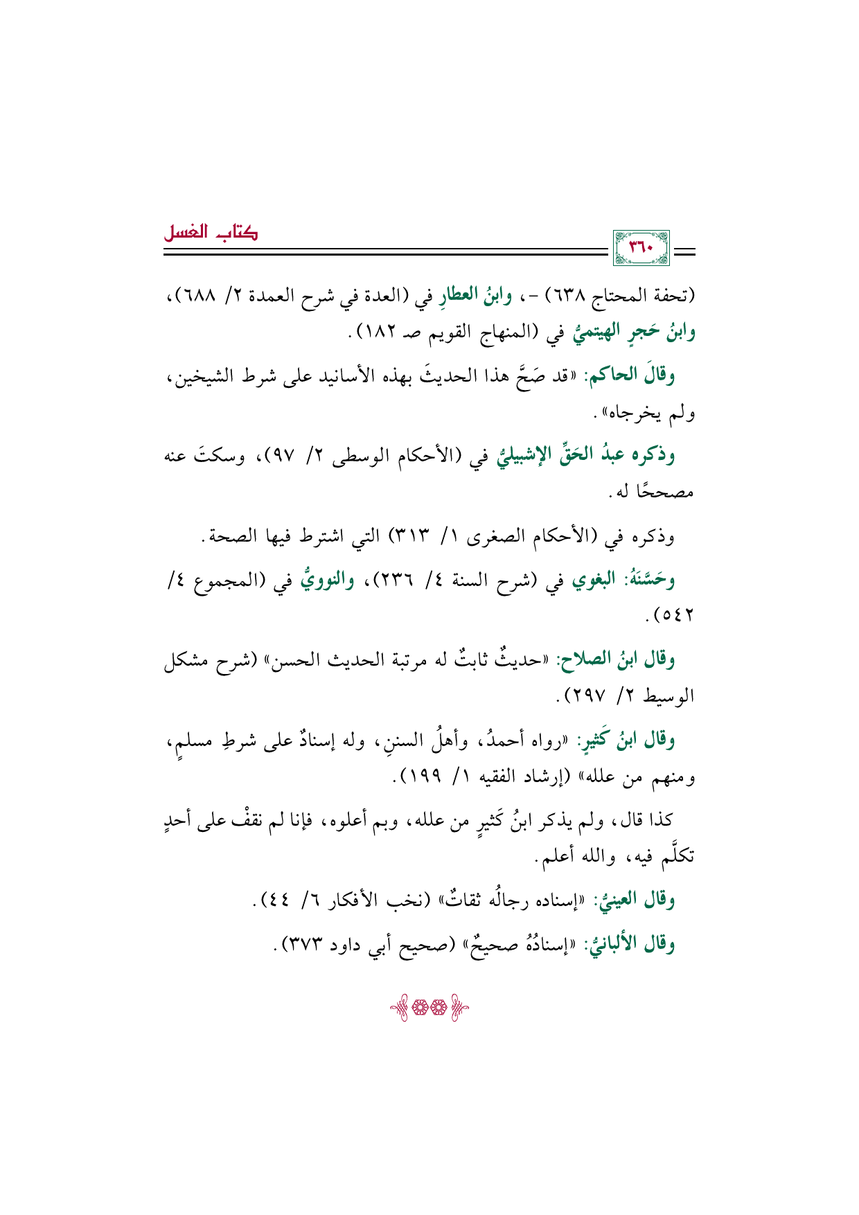 (تحفة المحتاج ٦٣٨) -، وابنُ العطارِ في (العدة في شرح العمدة ٢/ ٦٨٨)، وابنُ حَجرٍ الهيتميُّ في (المنهاج القويم صـ ١٨٢).