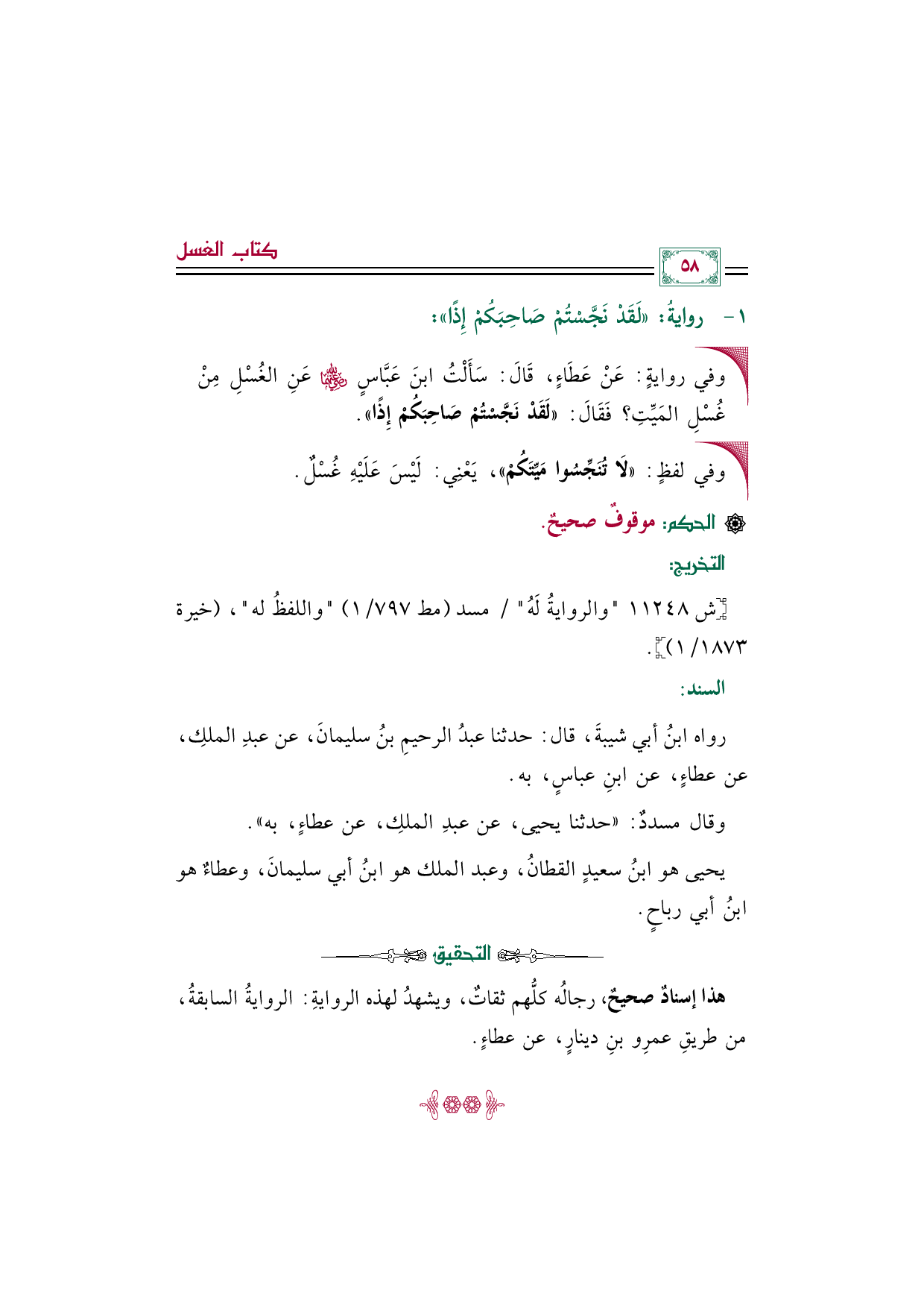 رواه ابنُ أبي شيبةَ، قال: حدثنا عبدُ الرحيمِ بنُ سليمانَ، عن عبدِ الملكِ، عن عطاءٍ، عن ابنِ عباسٍ، به.