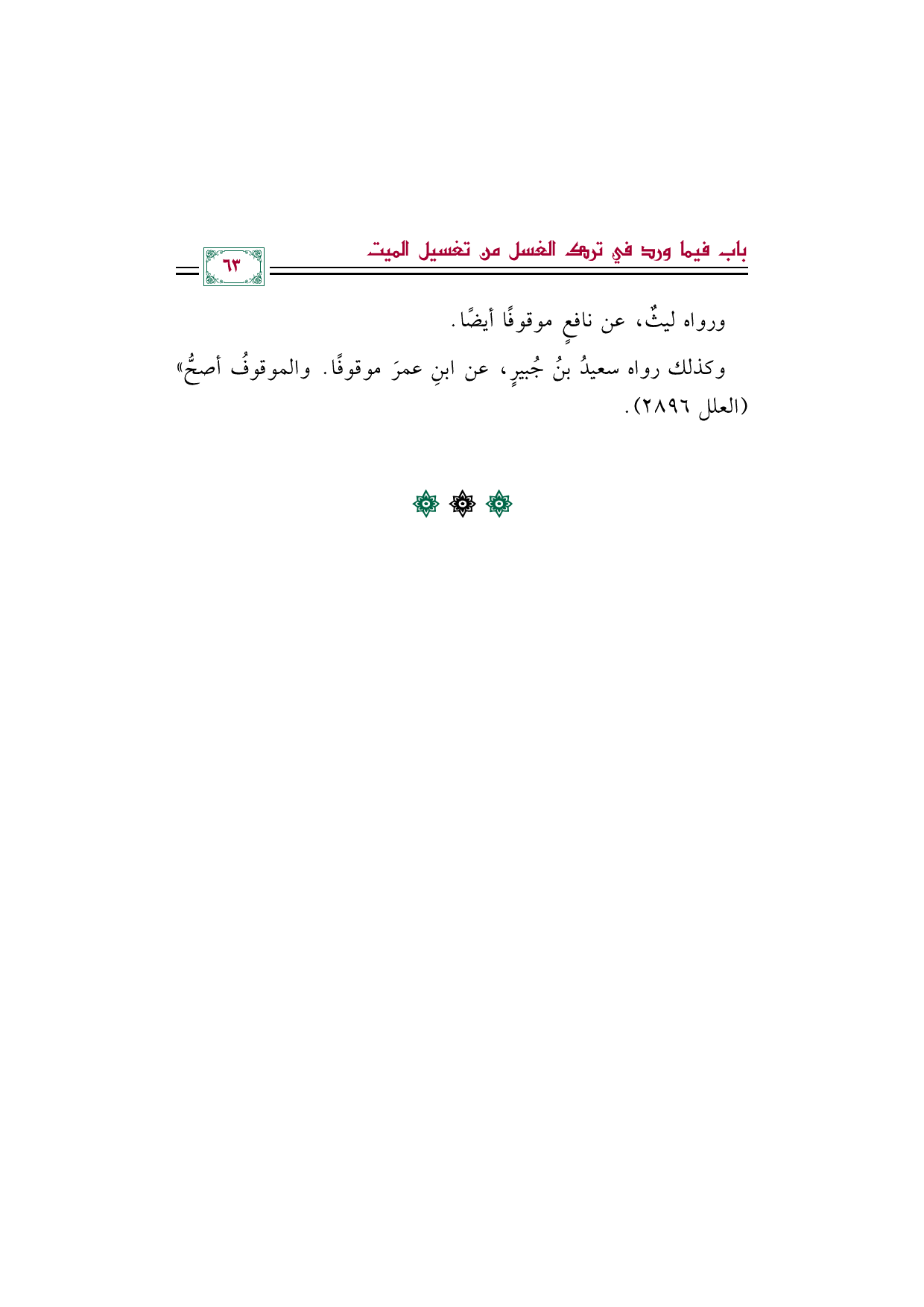 وكذلك رواه سعيدُ بنُ جُبيرٍ، عن ابنِ عمرَ موقوفًا. والموقوفُ أصحُّ" (العلل ٢٨٩٦).