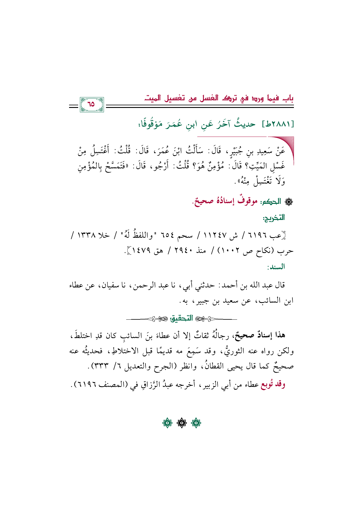 قال عبد الله بن أحمد: حدثني أبي، نا عبد الرحمن، نا سفيان، عن عطاء بن السائب، عن سعيد بن جبير، به.