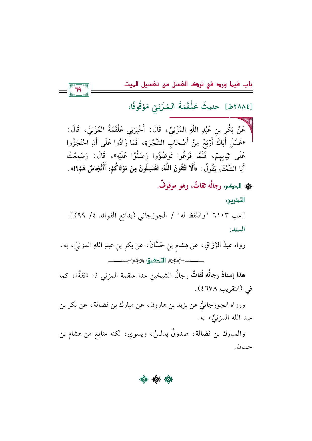 رواه عبدُ الرَّزاقِ، عن هِشامِ بنِ حَسَّانَ، عن بكرِ بنِ عبدِ اللهِ المزنيِّ، به.