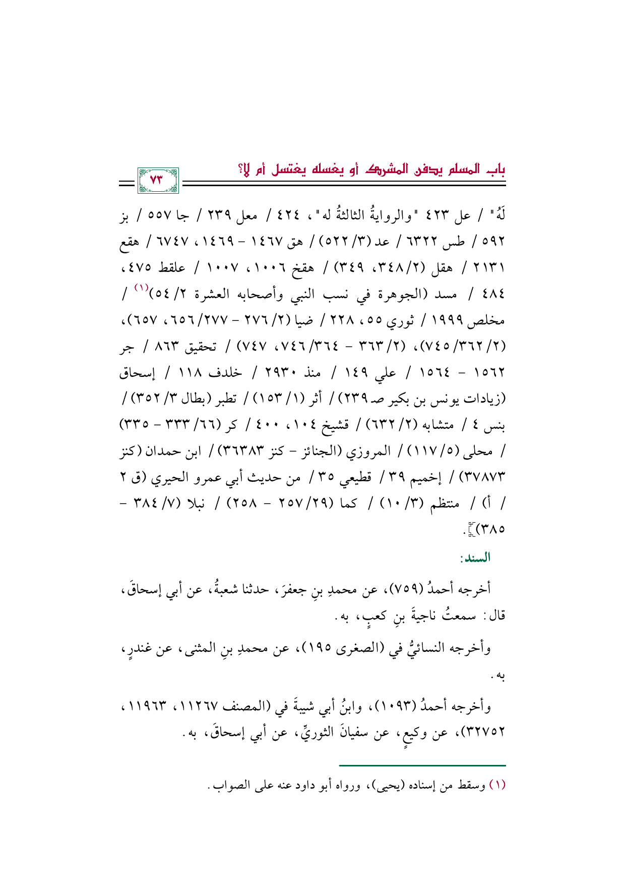وأخرجه أحمدُ (١٠٩٣)، وابنُ أبي شيبةَ في (المصنف ١١٢٦٧، ١١٩٦٣، ٣٢٧٥٢)، عن وكيعٍ، عن سفيانَ الثوريِّ، عن أبي إسحاقَ، به.