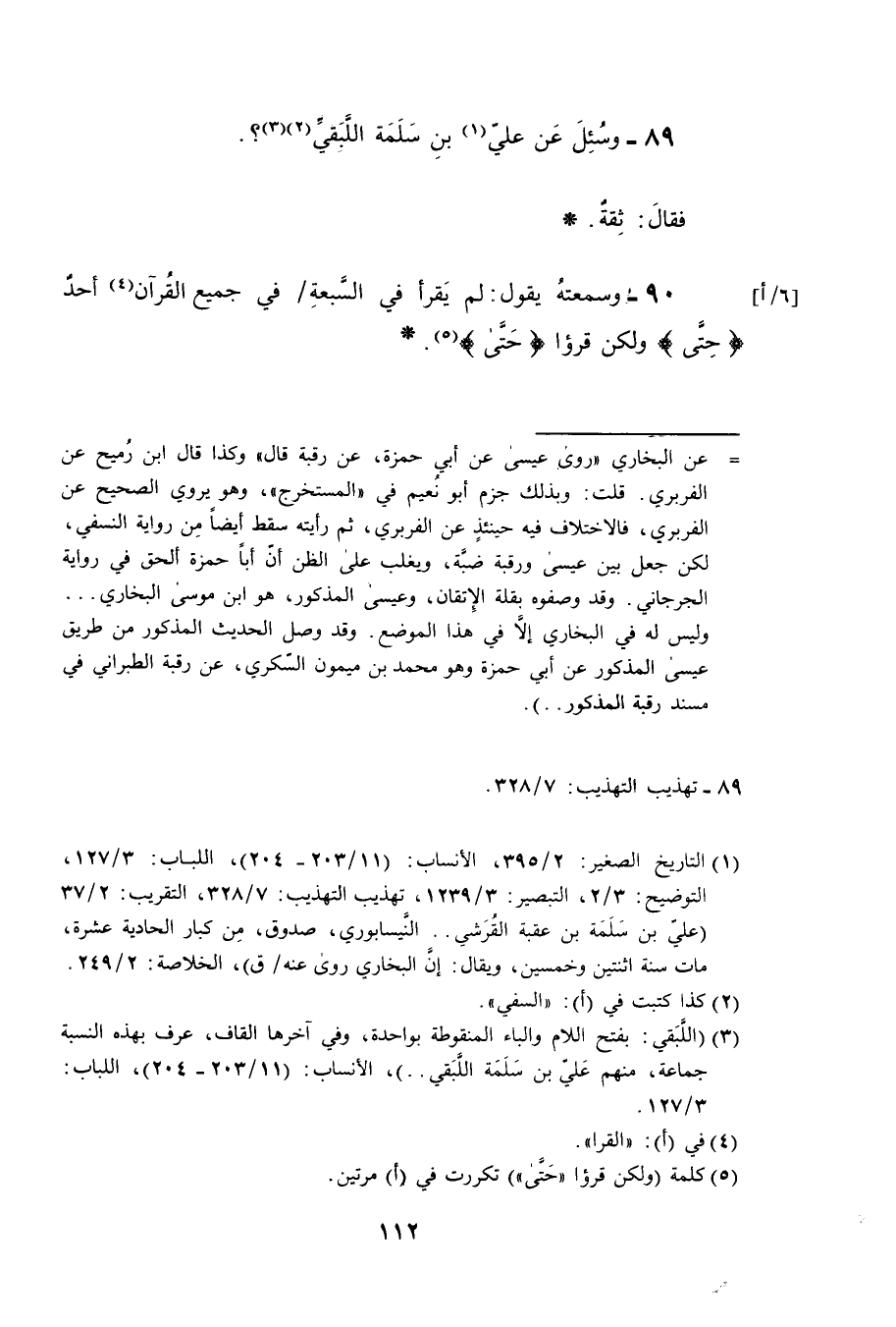 89- وسئل عن علي بن سلمة اللبقي