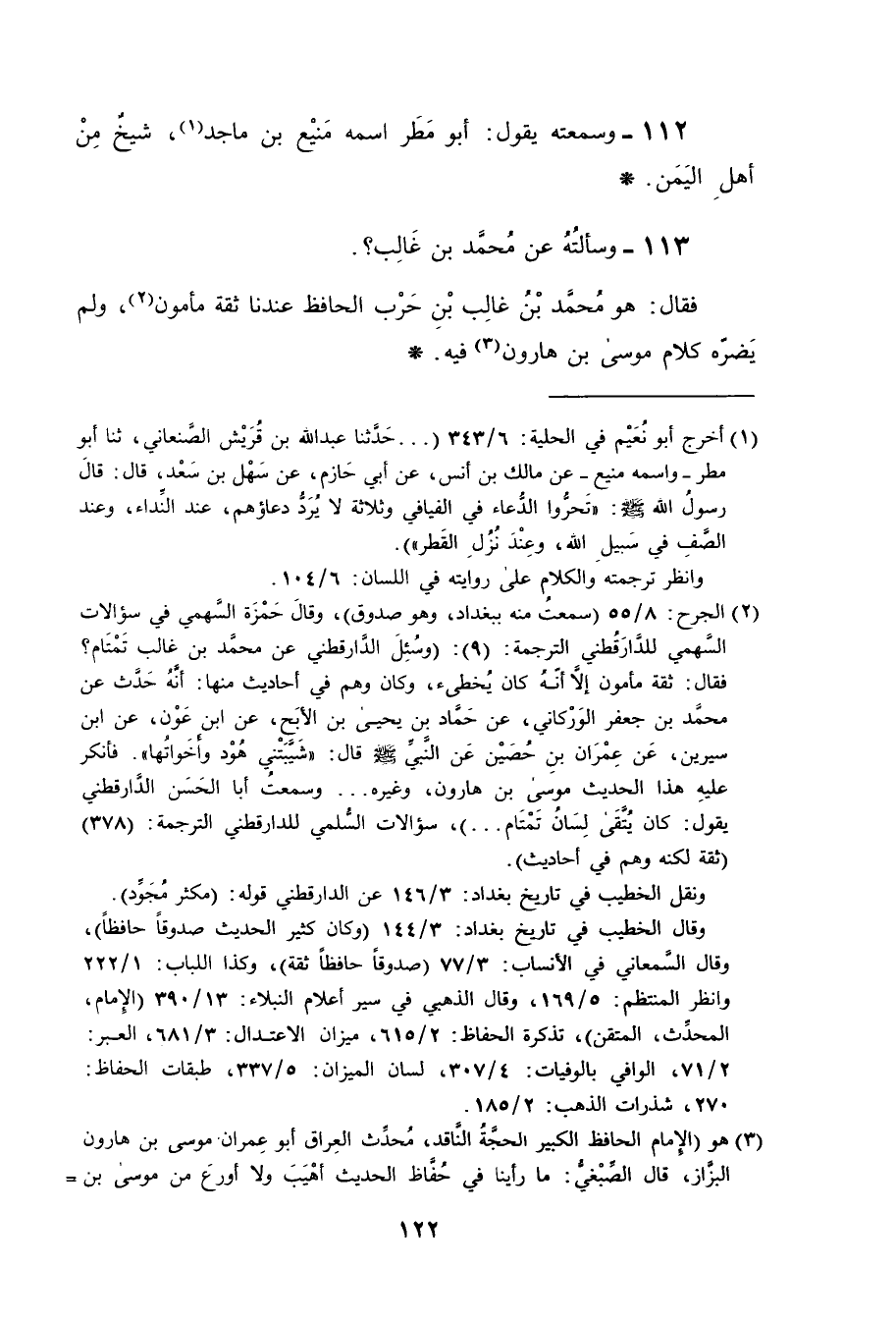 112- وسمعته يقول ابو مطر اسمه منيع بن ماجد شيخ من اهل اليمن.