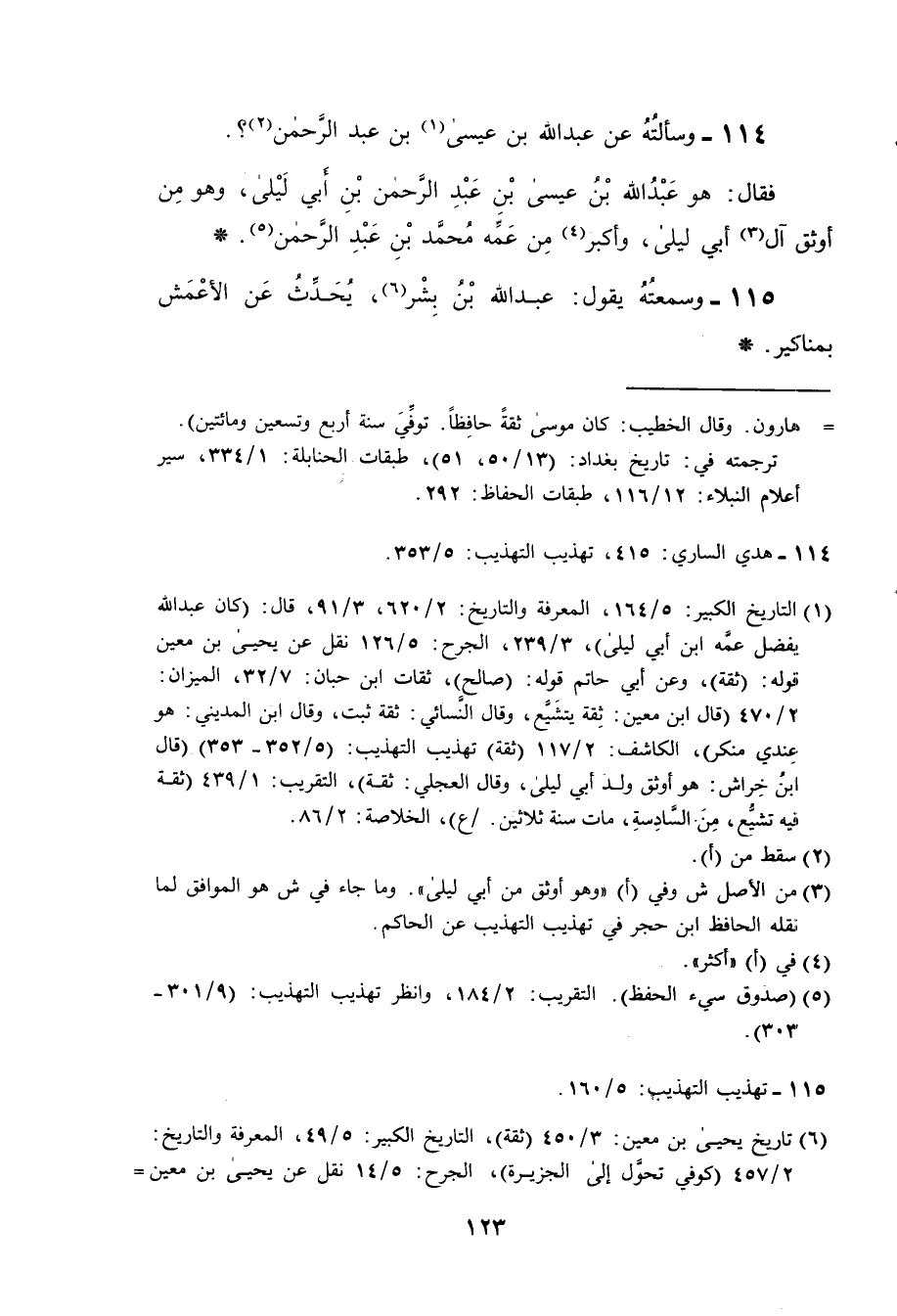 114- وسالته عن عبد الله بن عيسى بن عبد الرحمن