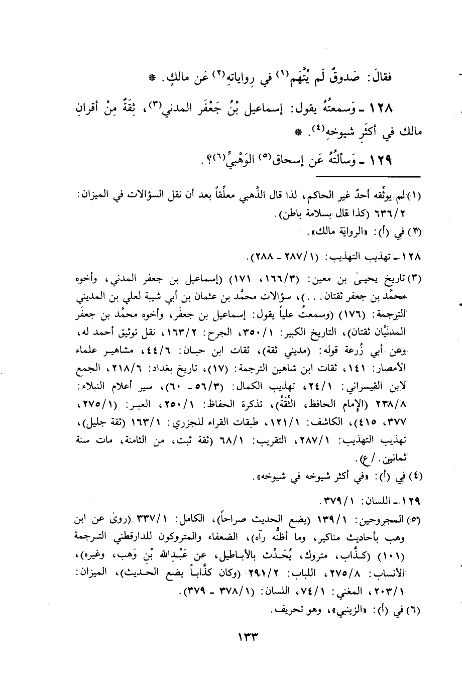 128- وسمعته يقول اسماعيل بن جعفر المدني ثقة من اقران مالك في اكثر شيوخه