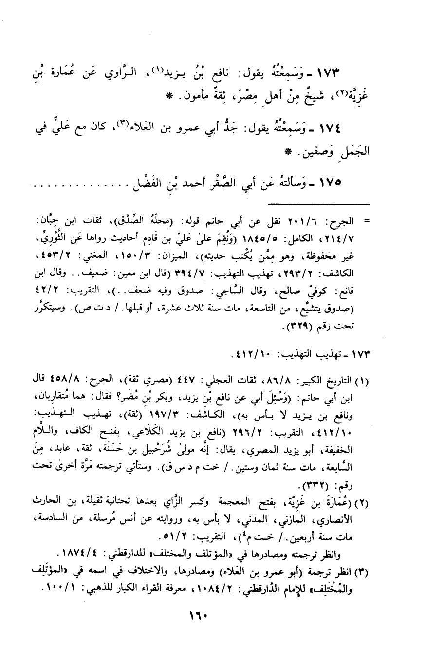 173- وسمعته يقول نافع بن يزيد الراوي عن عمارة بن غزية شيخ من اهل مصر ثقة مامون