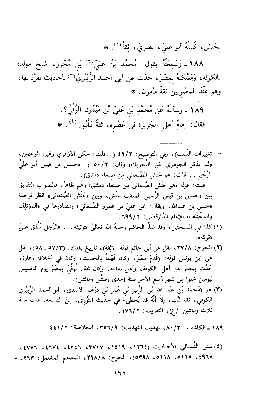 188- وسمعته يقول محمد بن علي بن محرز شيخ مولده بالكوفة ومسكنه بمصر حدث عن ابي احمد الزبيري باحاديث تفرد بها وهو عند المصريين ثقة مامون