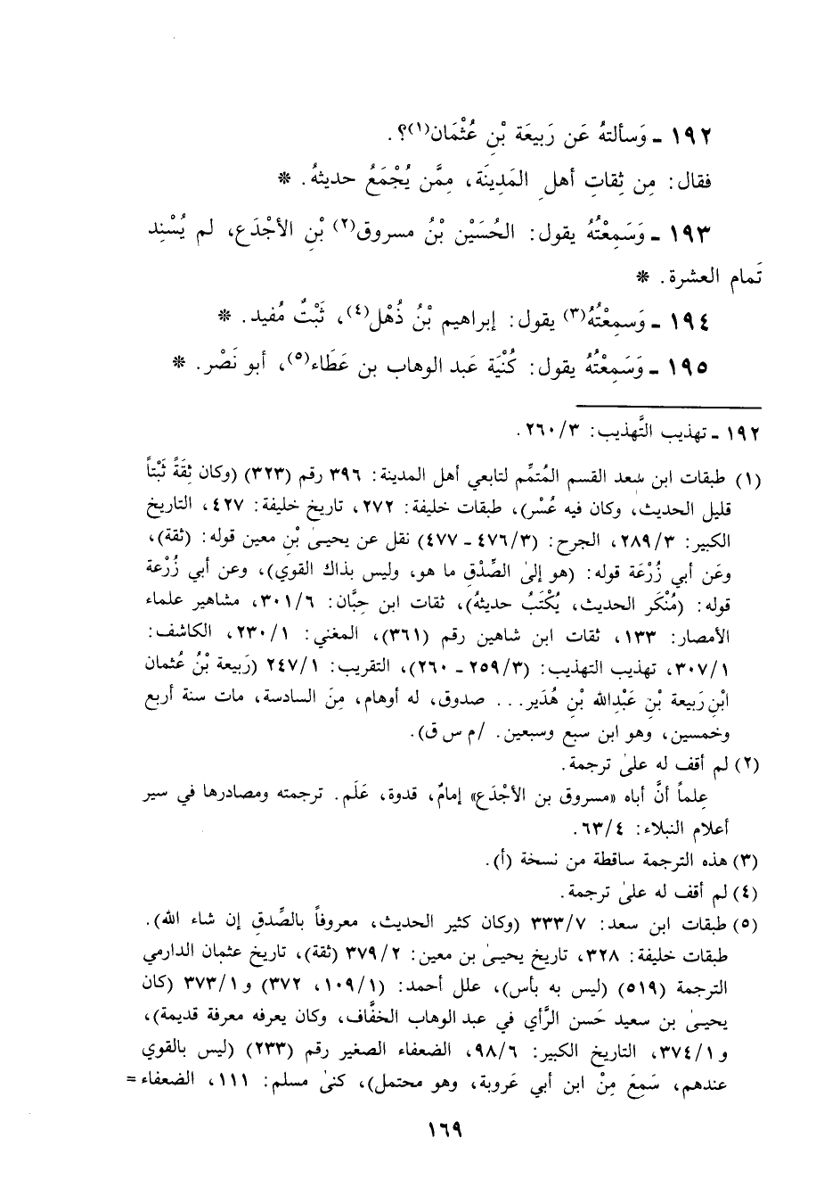 193- وسمعته يقول الحسين بن مسروق بن الاجدع لم يسند تمام العشرة