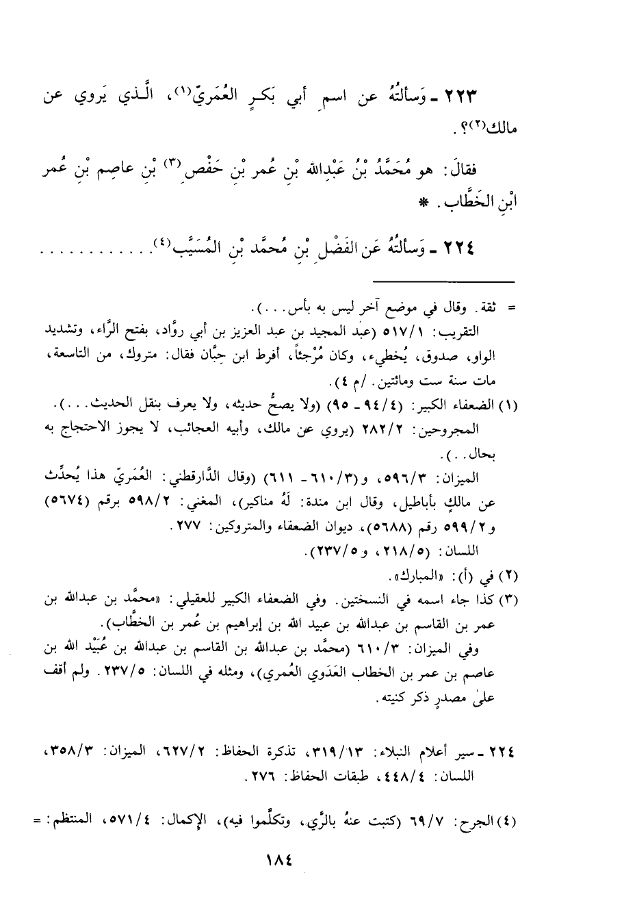 223- وسالته عن اسم ابي بكر العمري الذي يروي عن مالك