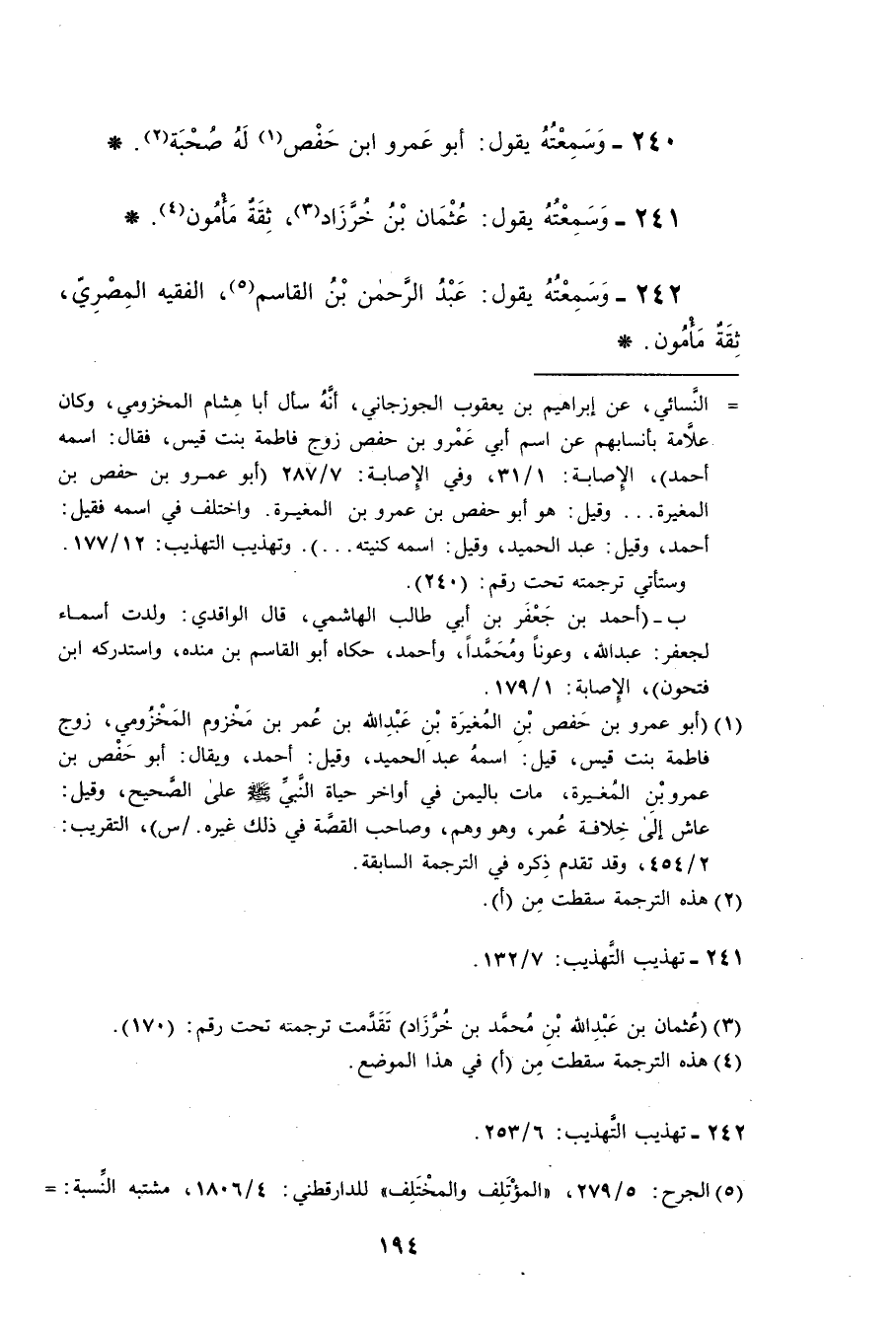 242- وسمعته يقول: عبد الرحمن بن القاسم الفقيه المصري ثقة مامون