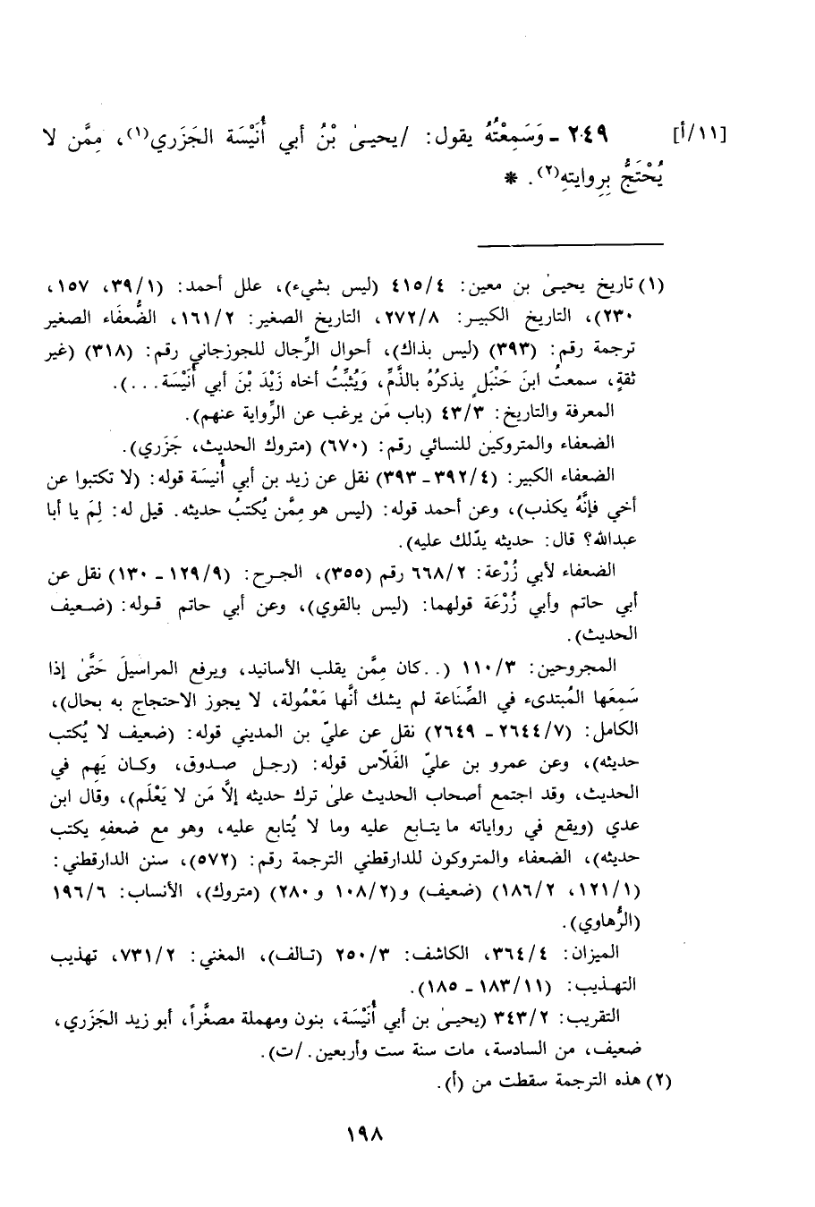 249- وسمعته يقول: يحيى بن ابي انيسة الجزري ممن لا يحتج بروايته