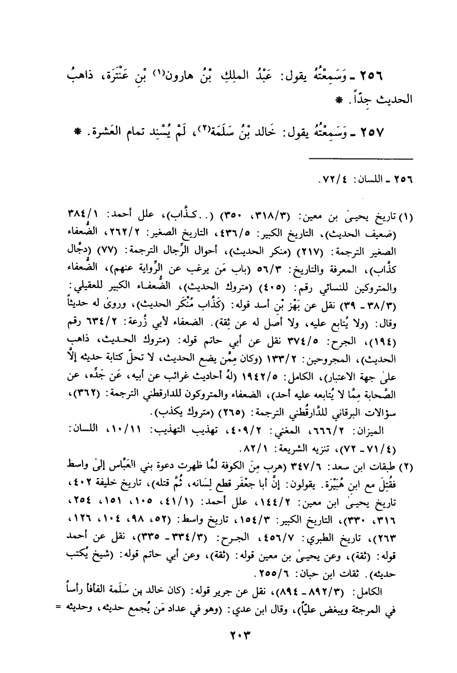256- وسمعته يقول: عبد الملك بن هارون بن عنترة ذاهب الحديث جدا