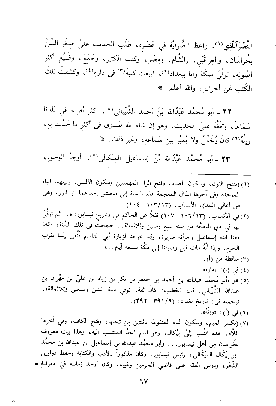 23- ابو محمد عبد الله بن اسماعيل الميكالي أوجه الوجوه.