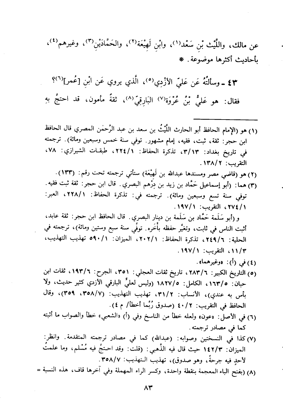 43- وسألته عن علي الأزدي الذي يروي عن ابن عمر فقال: هو علي بن عروة البارقي ثقة مأمون قد احتج به