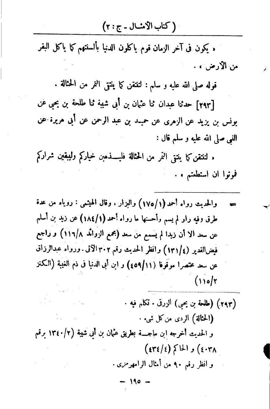 كتاب أمثال الحديث لأبي الشيخ الأصبهاني