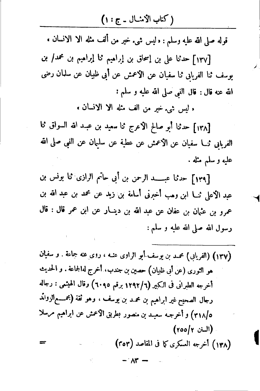 كتاب أمثال الحديث لأبي الشيخ الأصبهاني