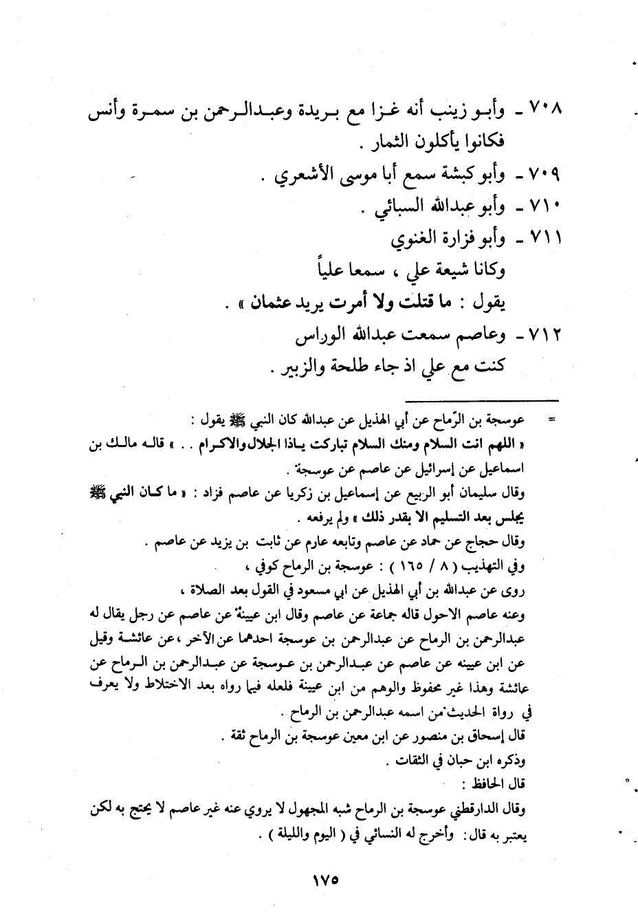 712 - وَعَاصِم سَمِعت عبد الله الوراس كنت مَعَ عَليّ إِذْ جَاءَ طَلْحَة وَالزُّبَيْر