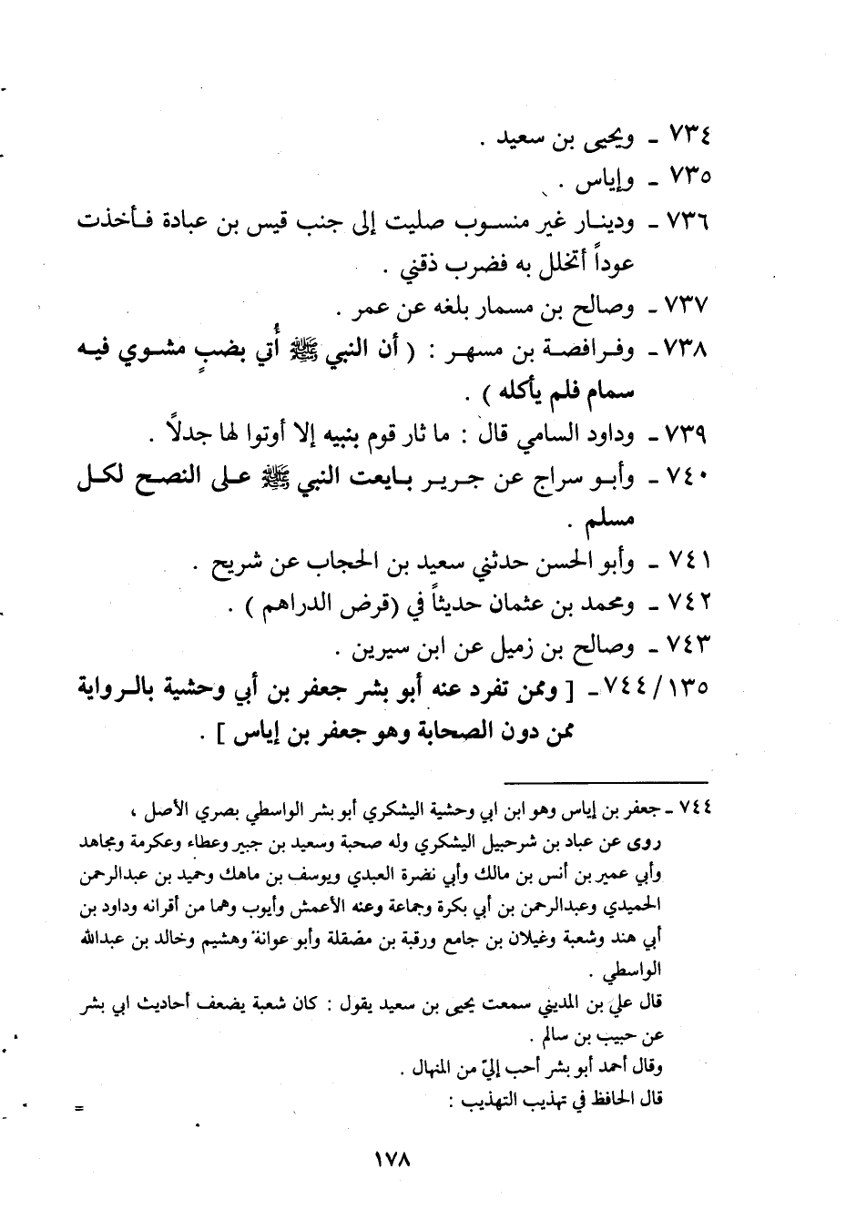 744 - وَمِمَّنْ تفرد عَنهُ أَبُو بشر جَعْفَر بن أبي وحشية بالرواية مِمَّن دون الصَّحَابَة وَهُوَ جَعْفَر بن إِيَاس