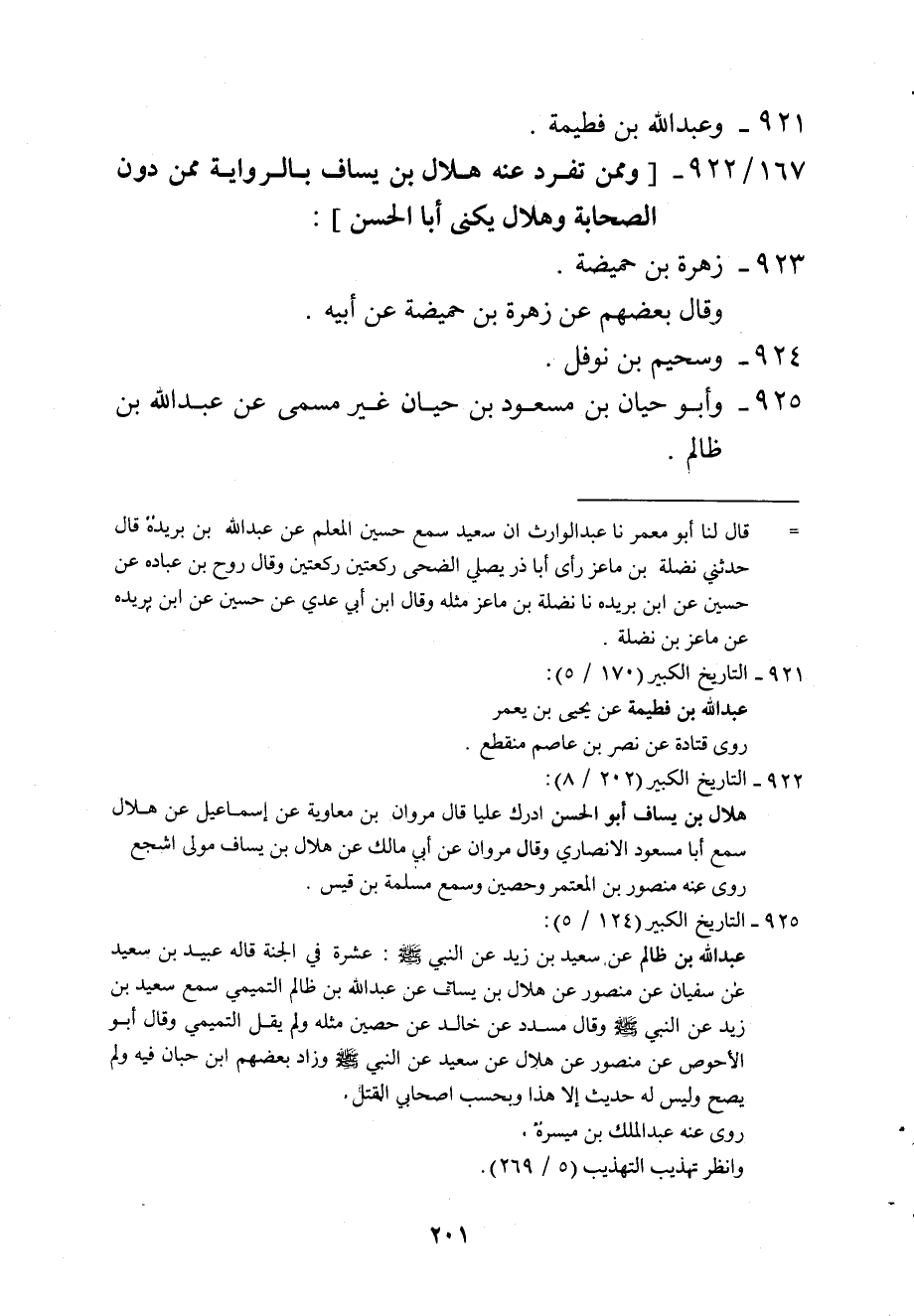 922 - وَمِمَّنْ تفرد عَنهُ هِلَال بن يسَاف بالرواية مِمَّن دون الصَّحَابَة وهلال يكنى أَبَا الْحسن