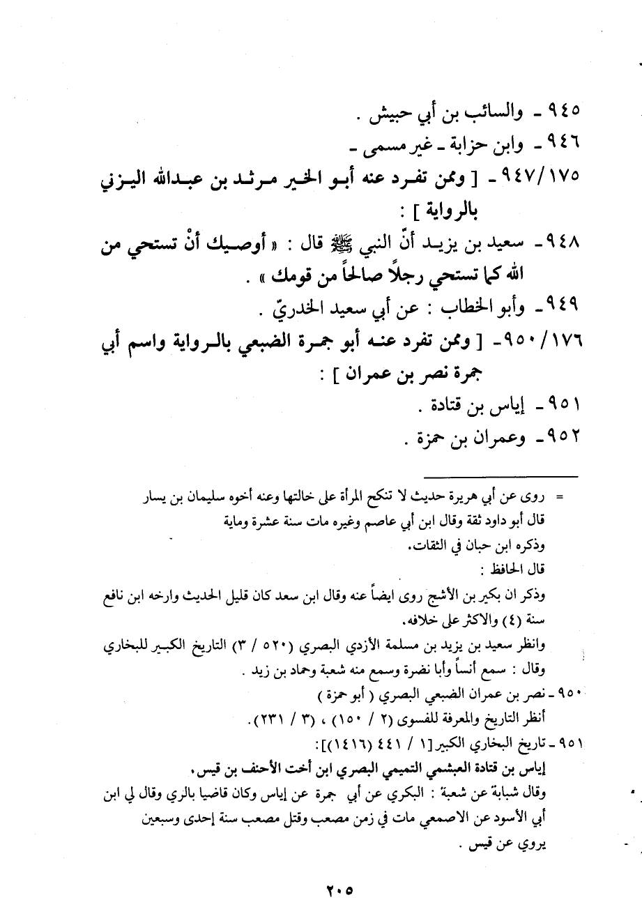 950 - وَمِمَّنْ تفرد عَنهُ أَبُو جَمْرَة الضبعِي بالرواية وَاسم أبي جَمْرَة نصر بن عمرَان