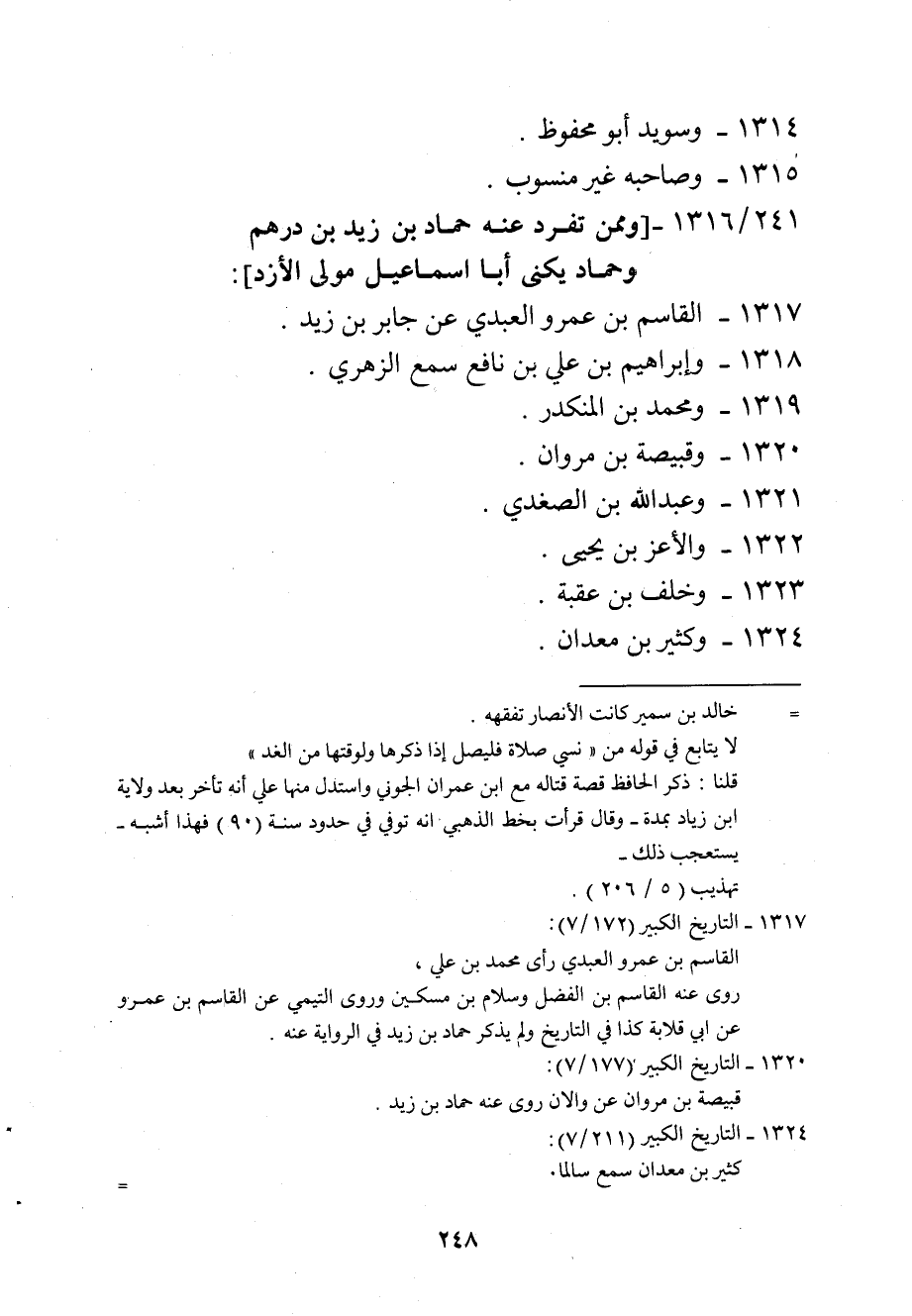 1316 - وَمِمَّنْ تفرد عَنهُ حَمَّاد بن زيد بن دِرْهَم وَحَمَّاد يكنى أَبَا إِسْمَاعِيل مولى الأزد