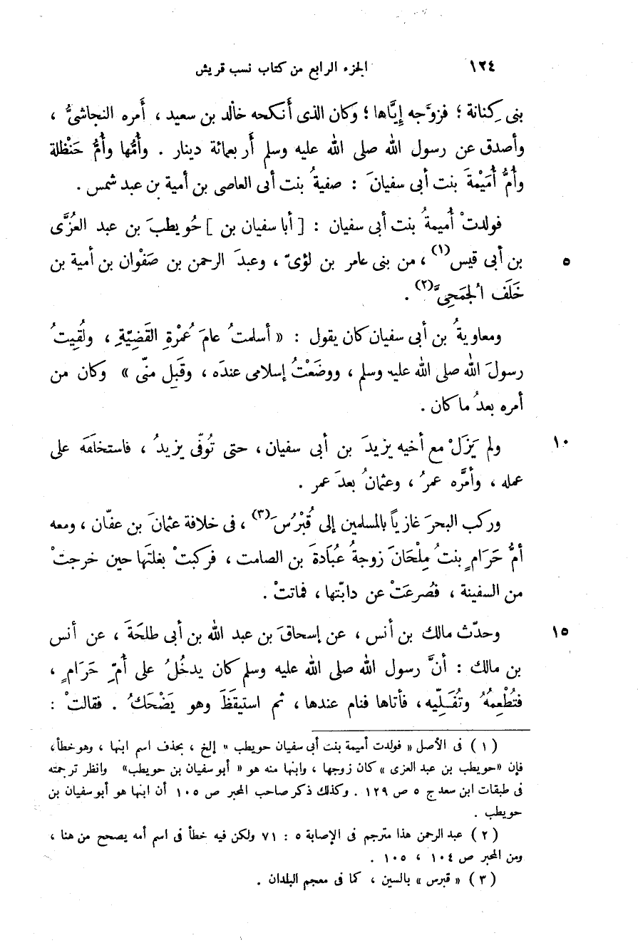 وحدث مالك بن أنس عن إسحاق بن عبد الله بن أبي طلحة، عن أنس بن مالك: أن رسول الله صَلَّى اللهُ عَلَيْهِ وَسَلَّمَ كان يدخل على أم حرام، فتطعمه وتفليه، فأتاها فنام عندها، ثم استيقظ وهو يضحك. فقالت: