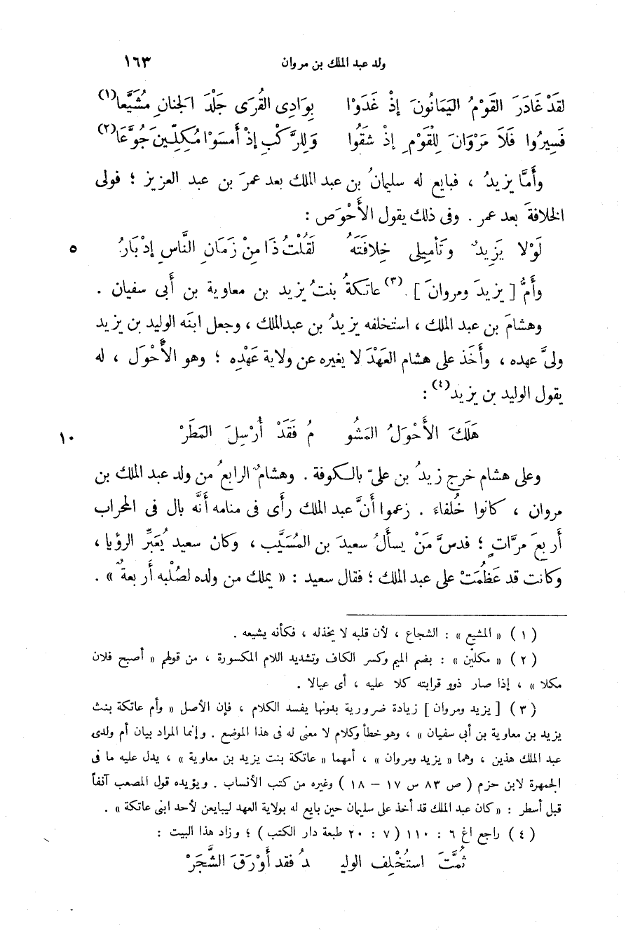 وأم يزيد ومروان عاتكة بنت يزيد بن معاوية بن أبي سفيان. وهشام بن عبد الملك، استخلفه يزيد بن عبد الملك، وجعل ابنه الوليد بن يزيد ولي عهده، وأخذ على هشام العهد لا يغيره عن ولاية عهده؛ وهو الأحول، له يقول الوليد بن يزيد: