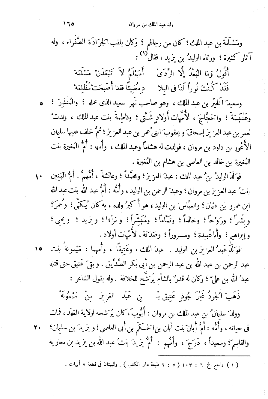 ومسلمة بن عبد الملك؛ كان من رجالهم؛ وكان يلقب الجرادة الصفراء، وله آثار كثيرة؛ ورثاه الوليد بن يزيد، فقال: