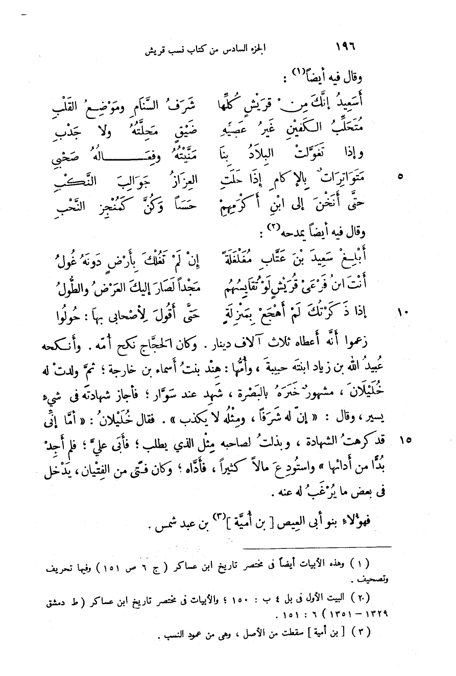 أسعيد إنك من قريش كلها ... شرف السنام وموضع القلب