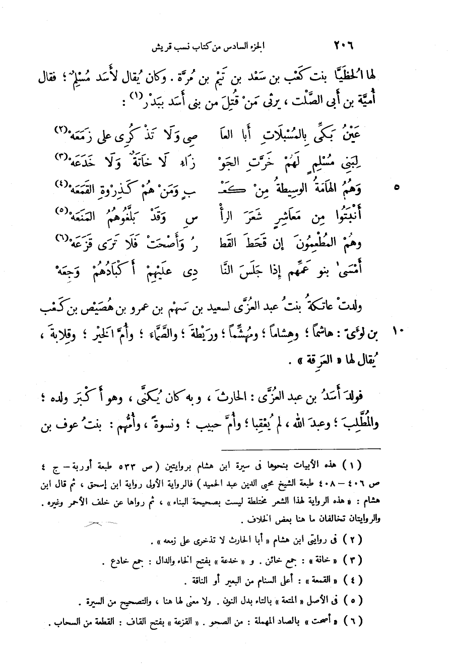 ولدت عاتكة بنت عبد العزى لسعيد بن سهم بن عمرو بن هصيص بن كعب بن لؤي: هاشماً؛ وهشاماً؛ ومهشماً؛ وريطة؛ والصماء؛ وأم الخير؛ وقلابة، يقال لها " العرقة ".