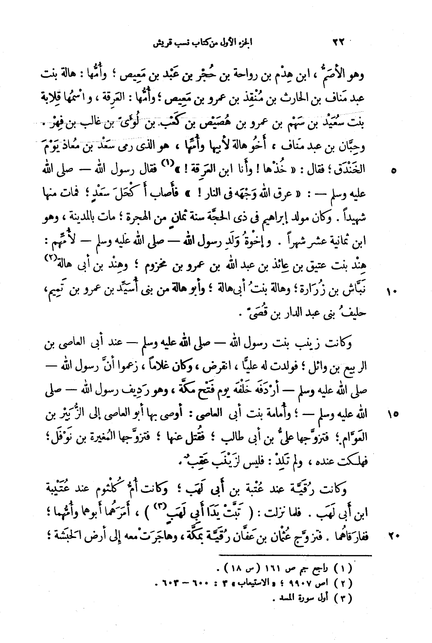 وهو الأصم، ابن هدم بن رواحة بن حجر بن عبد بن معيص؛ وأمها: هالة بنت عبد مناف بن الحارث بن منقذ بن عمرو بن معيص؛ وأمها: العرقة، واسمها قلابة بنت سعيد بن سهم بن عمرو بن هصيص بن كعب بن لؤي بن غالب بن فهر. وحبان بن عبد مناف، أخو هالة لأبيها وأمها، هو الذي رمى سعد بن معاذ يوم الخندق؛ فقال: " خذها! وأنا ابن العرقة! " فقال رسول الله - صَلَّى اللهُ عَلَيْهِ وَسَلَّمَ -: " عرق الله وجهه في النار! " فأصاب أكحل سعد؛ فمات منها شهيداً. وكان مولد إبراهيم في ذي الحجة سنة ثمان من الهجرة؛ مات بالمدينة، وهو ابن ثمانية عشر شهراً. وإخوة ولد رسول الله - صَلَّى اللهُ عَلَيْهِ وَسَلَّمَ - لأمهم: هند بن عتيق بن عائذ بن عبد الله بن عمرو بن مخزوم؛ وهند بن أبي هالة نباش بن زرارة؛ وهالة بنت أبي هالة؛ وأبو هالة من بني أسيد بن عمرو بن تميم، حليق بني عبد الدار بن قصي.
