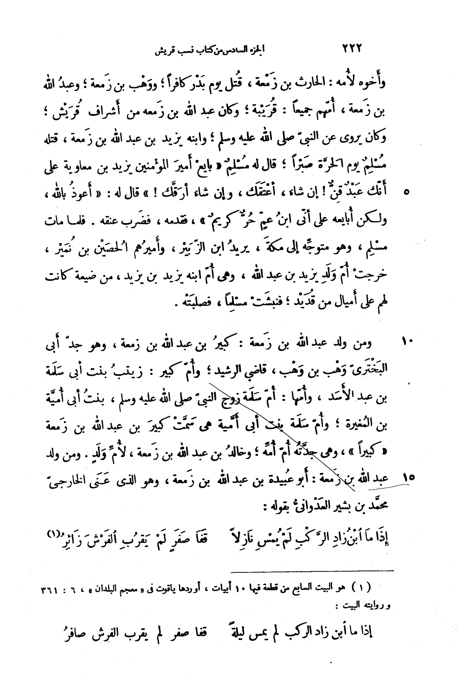 إذا ما ابن زاد الركب لم يمس ازلاً ... قفا صفر لم يقرب الفرش زائر