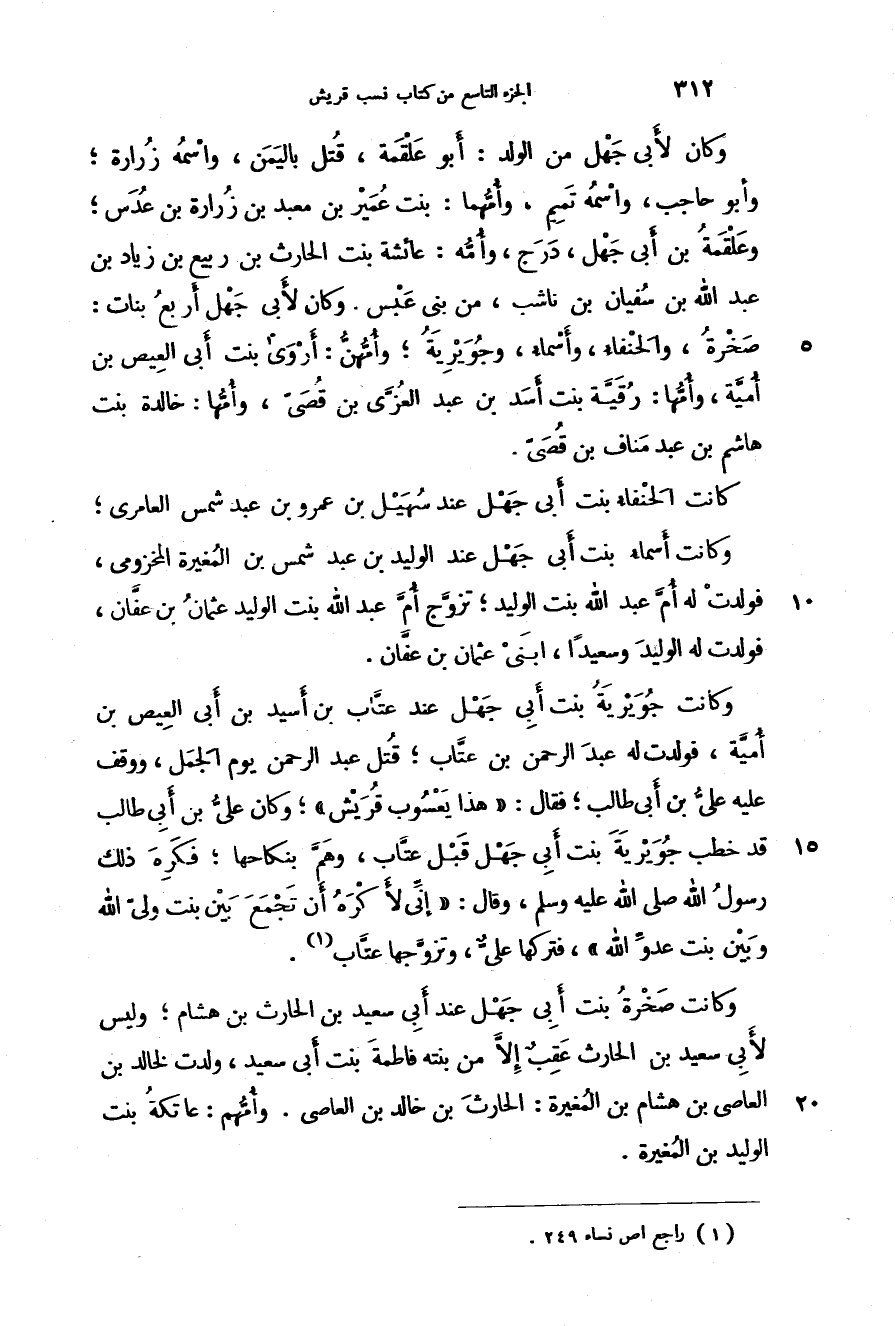 وكانت جويرية بنت أبي جهل عند عتاب بن أسد بن أبي العيص بن أمية، فولدت له عبد الرحمن بن عتاب؛ قتل عبد الرحمن يوم الجمل، ووقف عليه علي بن أبي طالب؛ فقال: " هذا يعسوب قريش "؛ وكان علي بن أبي طالب قد خطب جويرية بنت أبي جهل قبل عتاب، وهم بنكاحها؛ فكره ذلك رسول الله صَلَّى اللهُ عَلَيْهِ وَسَلَّمَ، وقال: " إني أكره أن تجمع بين بنت ولي الله وبين بنت عدو الله "، فتركها علي، وتزوجها عتاب.