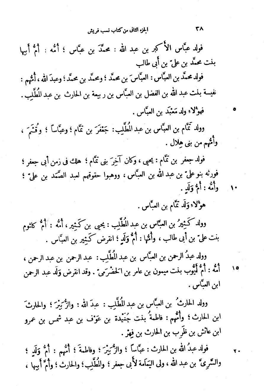 فولد جعفر بن تمام: يحيى، وكان آخر بني تمام، هلك في زمن أبي جعفر، فورثه بنو علي بن عبد الله بن العباس، ووهبوا حقوقهم لعبد الصمد بن علي؛ وأمه: أم ولد. هؤلاء ولد تمام بن العباس. وولد كثير بن العباس بن عبد المطلب: يحيى بن كثير، أمه: أم كلثوم بنت علي بن أبي طالب، وأمها: أم ولد؛ انقرض كثير ابن العباس. وولد عبد الرحمن بن العباس بن عبد المطلب: عبد الرحمن بن عبد الرحمن، أمه: أم أيوب بنت ميمون بن عامر بن الحضرمي. وقد انقرض ولد عبد الرحمن ابن العباس.