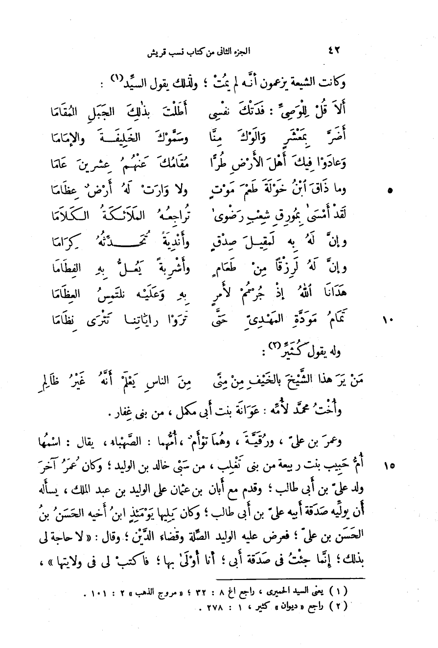 وكانت الشيعة يزعمون أنه لم يمت؛ ولذلك يقول السيد: