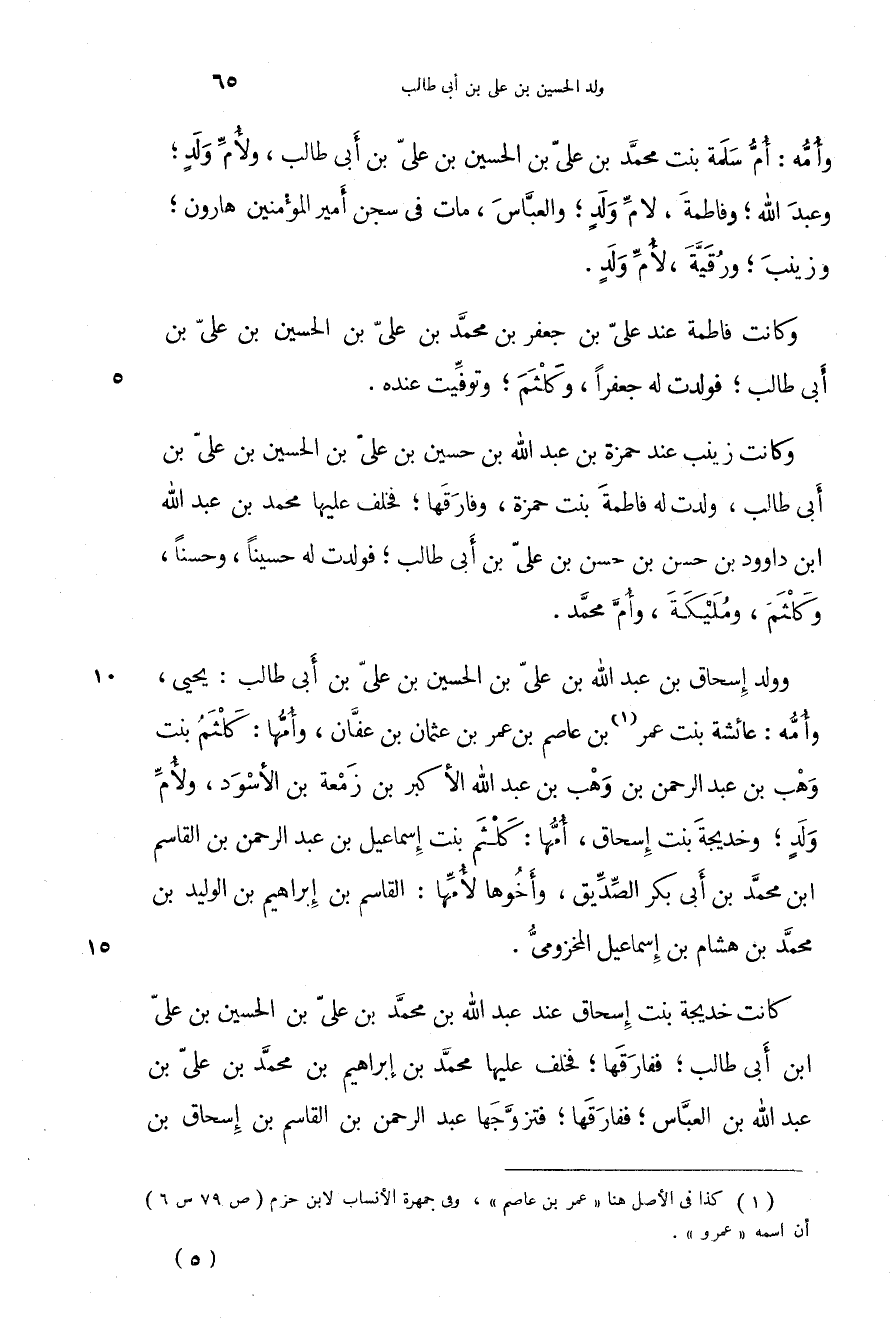 وأمه: أم سلمة بنت محمد بن علي بن الحسين بن علي بن أبي طالب، ولأم ولد؛ وعبد الله؛ وفاطمة، لأم ولد؛ والعباس، مات في سجن أمير المؤمنين هارون؛ وزينب؛ ورقية، لأم ولد.
