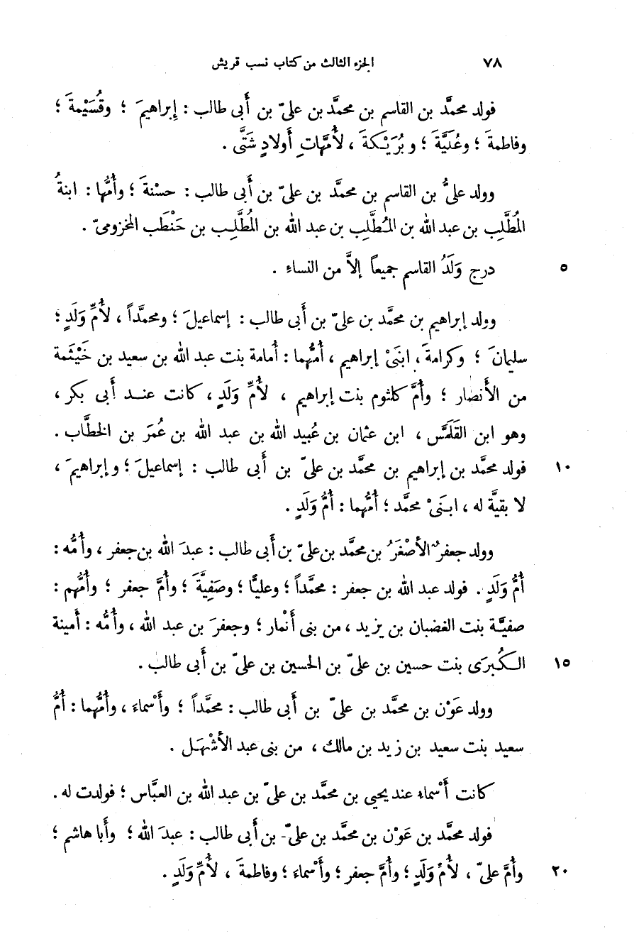 فولد محمد بن إبراهيم بن محمد بن علي بن أبي طالب: إسماعيل؛ وإبراهيم، لا بقية له، ابني محمد؛ أمهما: أم ولد.