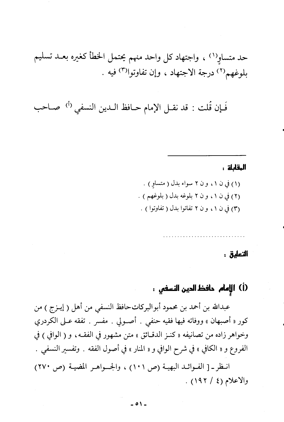 فَإِن قلت قد نقل الإِمَام حَافظ الدّين النَّسَفِيّ صَاحب